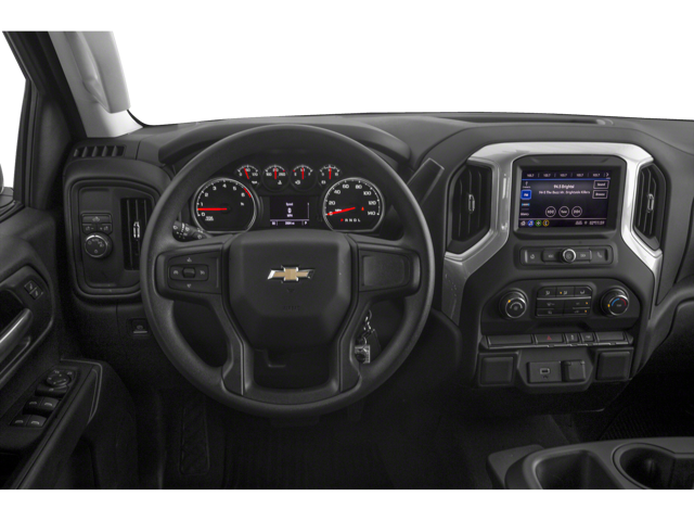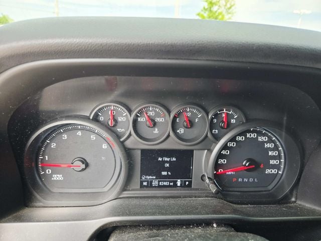 This Silverado 1500 is well Equipped with Custom Convenience Package (Electric Rear-Window Defogger, EZ Lift Power Lock & Release Tailgate, LED Cargo Area Lighting, Remote Vehicle Starter System, and Theft Deterrent System (Unauthorized Entry)), Dark Essentials Package (LPO) (Black Name Plates (LPO), Black Tailgate CHEVROLET Lettering (LPO), and Front Black Bowtie Emblem (LPO)), Infotainment Package (4G LTE Wi-Fi Hot Spot Capable, Chevrolet Connected Access Capable, Compass, OnStar & Chevrolet Connected Services Capable, and SiriusXM Radio), Preferred Equipment Group 1CX (170 Amps Alternator, 3.5 Diagonal Monochromatic Display, Bluetooth® For Phone, Body Color Grille, Color-Keyed Carpeting Floor Covering, Deep-Tinted Glass, Front Frame-Mounted Black Recovery Hooks, Front Rubberized Vinyl Floor Mats, Locking Tailgate, Manual Tilt-Wheel Steering Column, Power Door Locks, Power Front Windows w/Driver Express Up/Down, Power Front Windows w/Passenger Express Down, Power Rear Windows w/Express Down, Rear 60/40 Folding Bench Seat (Folds Up), Rear Rubberized-Vinyl Floor Mats, Remote Keyless Entry, and Steering Wheel Mounted Electronic Cruise Control), Trailering Package (Hitch Guidance), 6-Speed Automatic Electronic with Overdrive, 4WD, Jet Black Cloth, 3.42 Rear Axle Ratio, 4-Wheel Disc Brakes, 6 Speakers, 720 Heavy-Duty Battery, ABS brakes, Air Conditioning, Alloy wheels, Apple CarPlay/Android Auto, Auxiliary External Transmission Oil Cooler, Brake assist, Bumpers: body-color, Cloth Seat Trim, Delay-off headlights, Driver door bin, Driver vanity mirror, Dual Exhaust w/Polished Outlets, Dual front impact airbags, Dual front side impact airbags, Electronic Stability Control, Exterior Parking Camera Rear, Front 40/20/40 Split-Bench Seat, Front anti-roll bar, Front Center Armrest, Front License Plate Kit, Front reading lights, Front wheel independent suspension, Fully automatic headlights, Heated door mirrors, Heavy Duty Suspension, Heavy-Duty Rear Locking Differential, Illuminated entry, Integrated Trailer Brake Controller, Low tire pressure warning, Occupant sensing airbag, Off-Road Assist Steps (LPO), Outside temperature display, Overhead airbag, Overhead console, Panic alarm, Passenger door bin, Passenger vanity mirror, Polished Exhaust Tip, Power door mirrors, Power steering, Power windows, Radio data system, Radio: Chevrolet Infotainment 3 System, Rear reading lights, Rear step bumper, Remote keyless entry, Speed control, Speed-sensing steering, Split folding rear seat, Tachometer, Tilt steering wheel, Traction control, Trip computer, Variably intermittent wipers, Voltmeter, and Wheels: 20 x 9 Bright Silver Painted Aluminum.