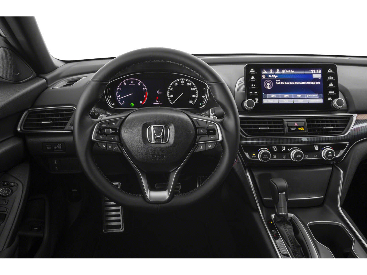 The interior of this Accord Sport is equally impressive, with premium fabric and synthetic leather seating, a leather-wrapped steering wheel, and a host of advanced technology features. The 8-speaker audio system, complete with AM/FM radio and a 180-watt sound system, provides a premium listening experience, while the dual-zone automatic climate control keeps you and your passengers comfortable no matter the weather.